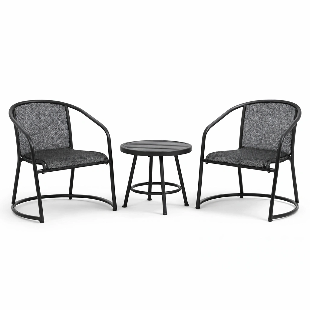 Conjunto de descanso de aluminio y teca gris negro con sillas y mesa